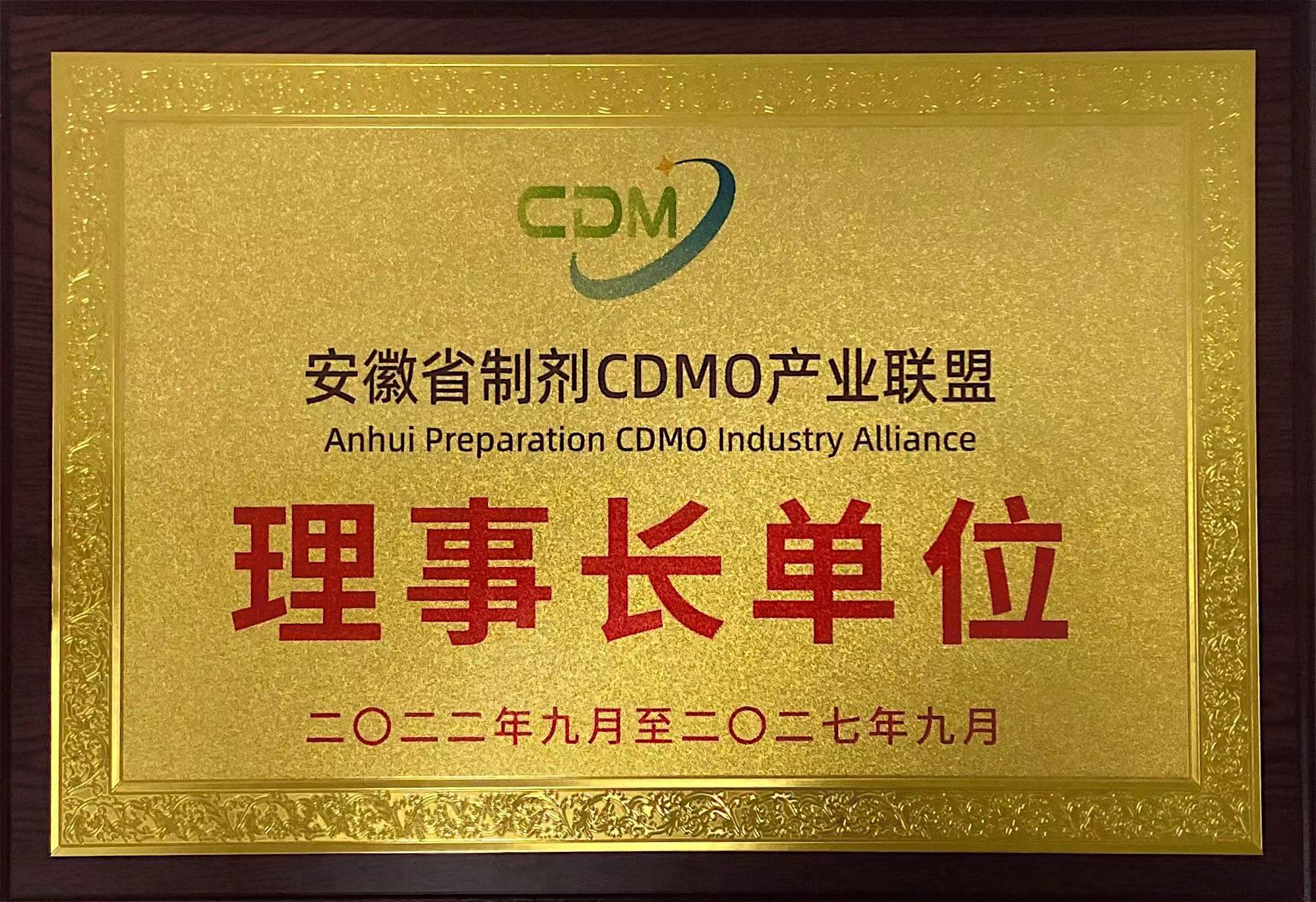 當選安徽省制劑CDMO產業(yè)聯盟理事長單位