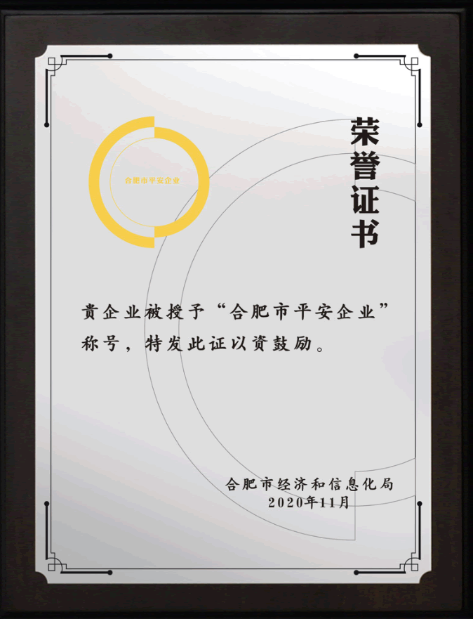 合肥市平安企業(yè) - 證書