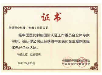 獲得中國醫(yī)保商會(huì)頒布的中國醫(yī)藥企業(yè)制劑國際化先導(dǎo)企業(yè)認(rèn)證證書